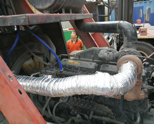 廣州市新力金屬有限公司對中集集團旗下的深圳左炮臺堆場排放超標堆高機進行尾氣后處理改造。中國國際海運集裝箱股份有限公司(簡稱:中集集團),是一家為全球市場提供“現(xiàn)代化交通運輸裝備和服務”的企業(yè)集團,主要經(jīng)營集裝箱、道路運輸車輛、能源、化工及食品裝備、海洋工程、機場設備等裝備的制造和服務。 ???????堅持綠色發(fā)展理念,樹立“綠水青山就是金山銀山”的強烈意識。堆高機柴油發(fā)動機排出的尾氣是一種高溫高速的脈動性氣流,噪聲大,污染重,特別是排出的碳顆粒,若不加處理直接排放,對大氣環(huán)境會造成嚴重污染,它可以深入人的肺部損傷肺內(nèi)各種通道的自凈作用,從而使其他化合物發(fā)揮致癌作用。這些碳顆粒上還吸附有很多有機物質(zhì),包括多環(huán)芳烴等,這些物質(zhì)有不同程度的誘變和致癌作用。根據(jù)國家和深圳的環(huán)保要求,需要對該廢氣進行治理后達標排放。